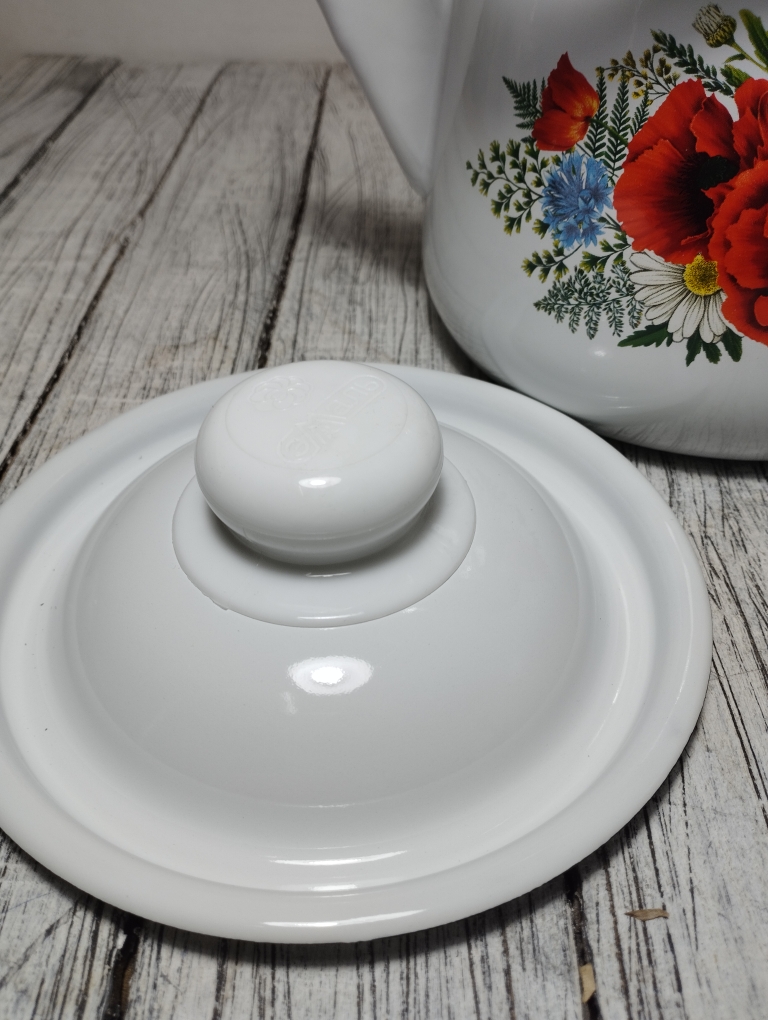 Этот практичный и стильный чайник эмалированный объёмом 2,5 литра станет отличным дополнением к вашей кухне. Выполненный в классическом белом цвете с красочным рисунком.