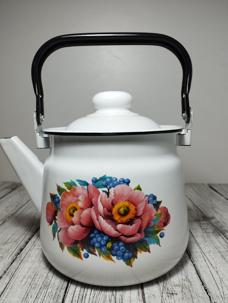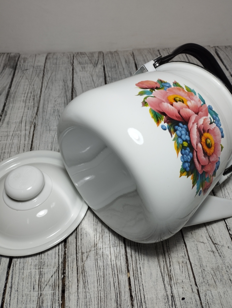 Этот практичный и стильный чайник эмалированный объёмом 2,5 литра станет отличным дополнением к вашей кухне. Выполненный в классическом белом цвете с красочным рисунком.