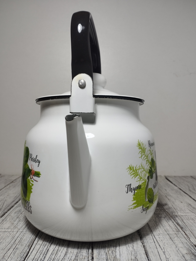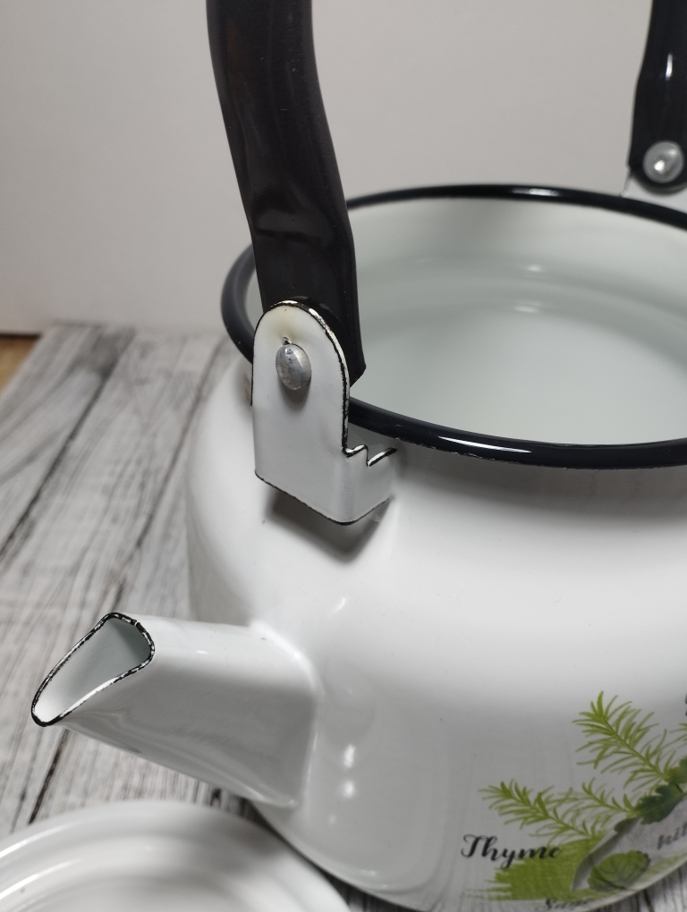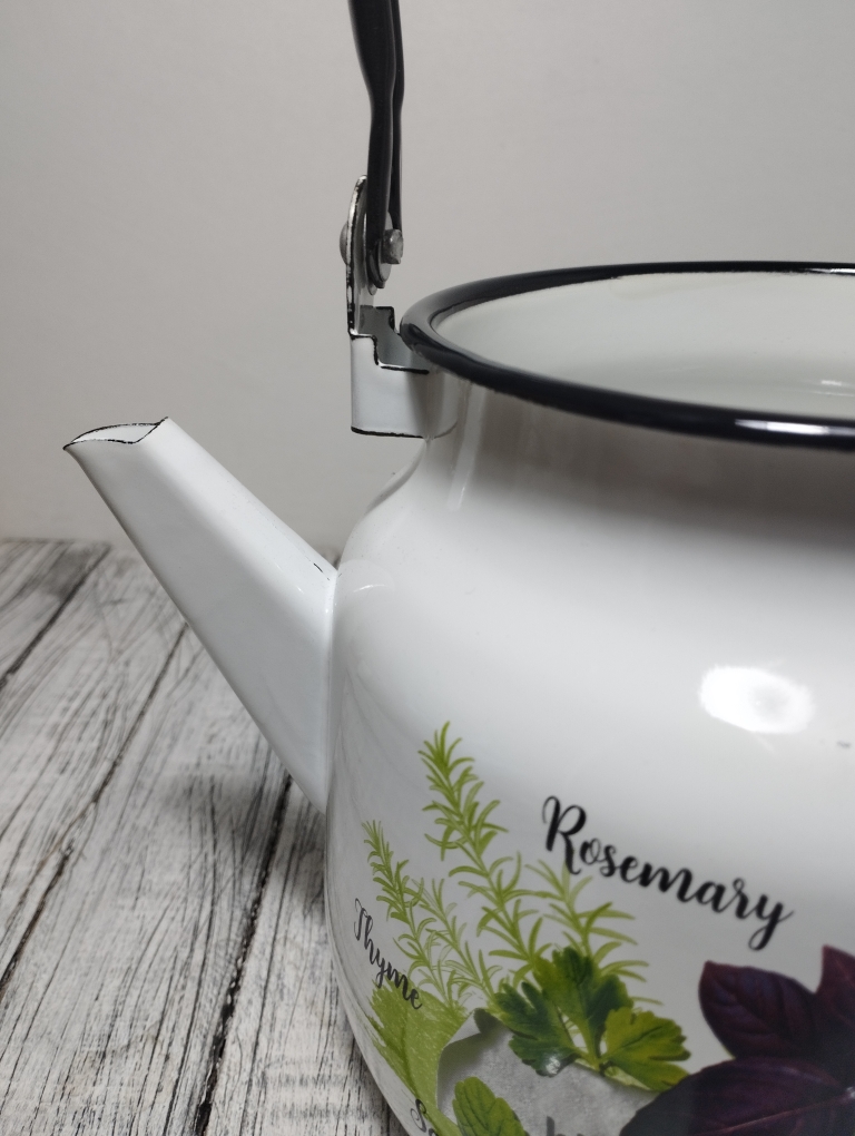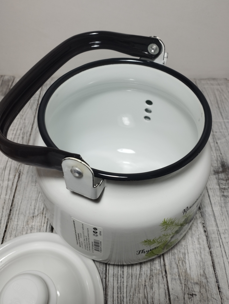 Чайник оснащен подвижной ручкой, что делает его лёгким в эксплуатации и значительно упрощает наливание кипятка. Эта модель совместима со всеми видами плит, включая индукционные, что делает его универсальным выбором для любой кухни. Основной материал — эмалированная сталь, которая обеспечивает долговечность и устойчивость к коррозии.