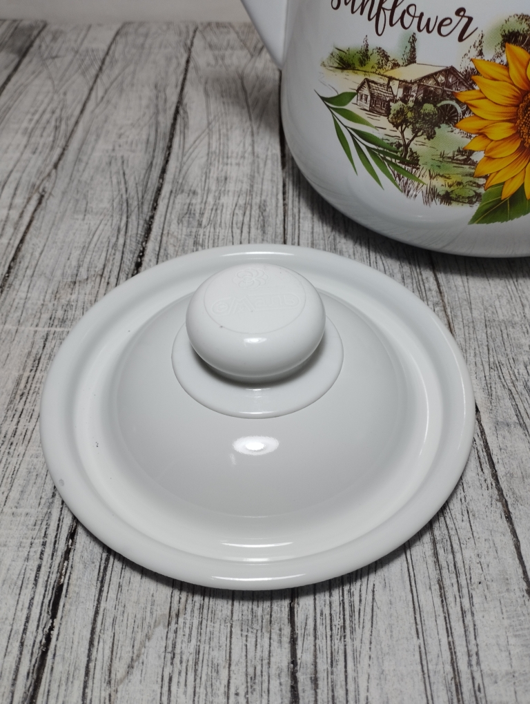 Этот практичный и стильный чайник эмалированный объёмом 3,5 литра станет отличным дополнением к вашей кухне. Выполненный в классическом белом цвете с симпатичным рисунком.