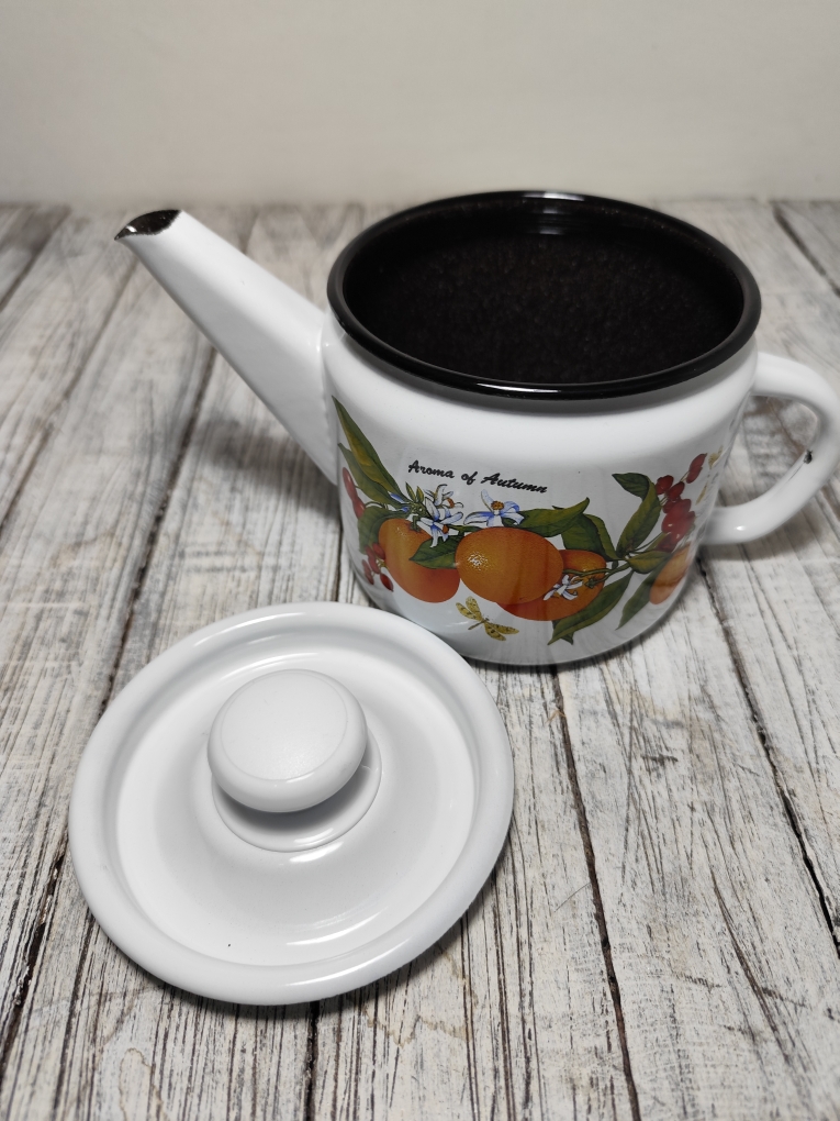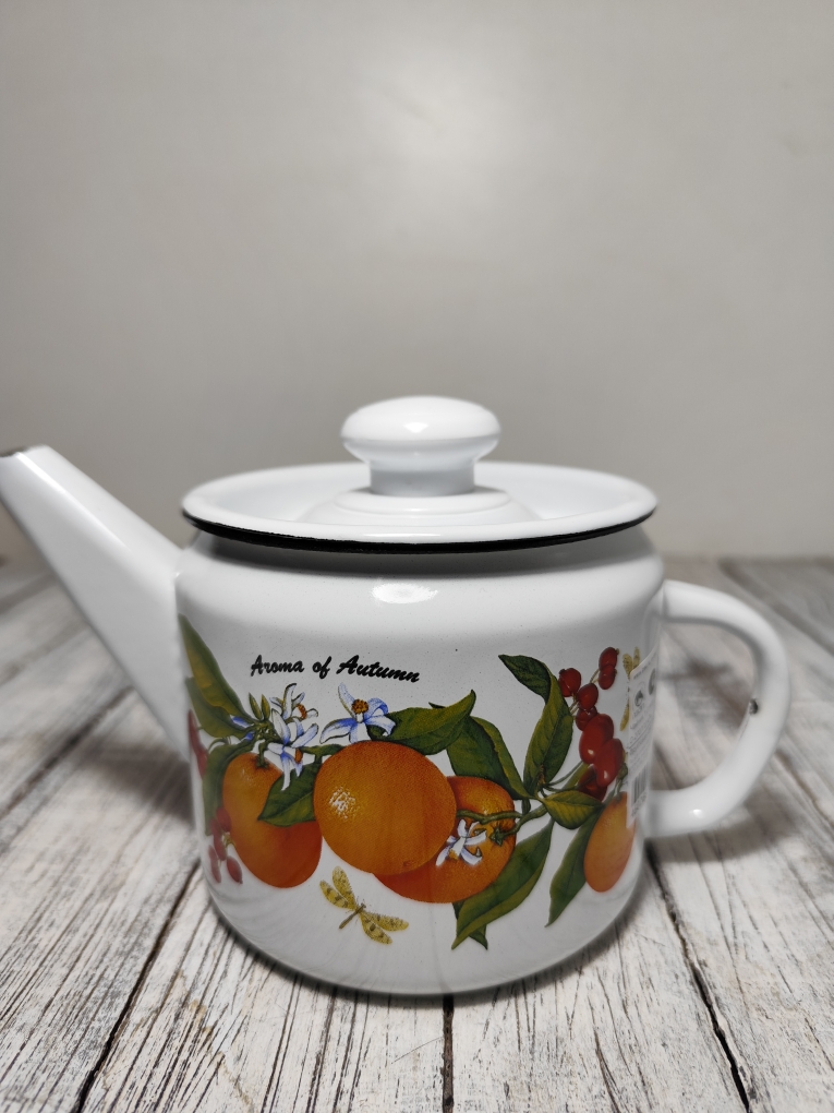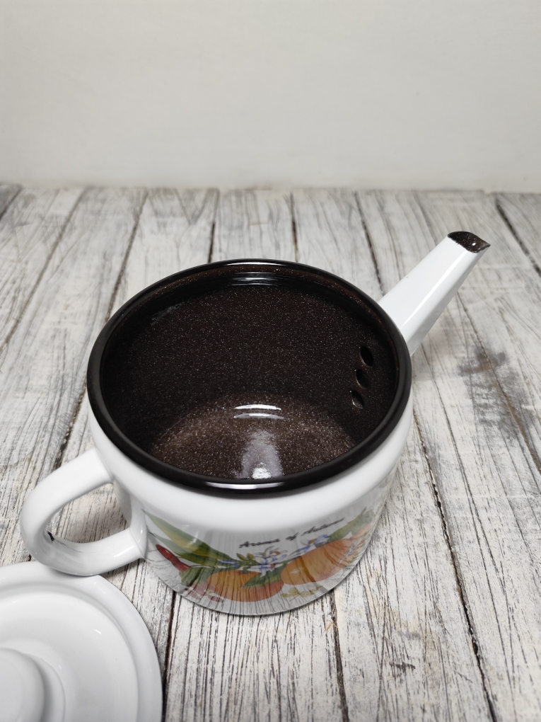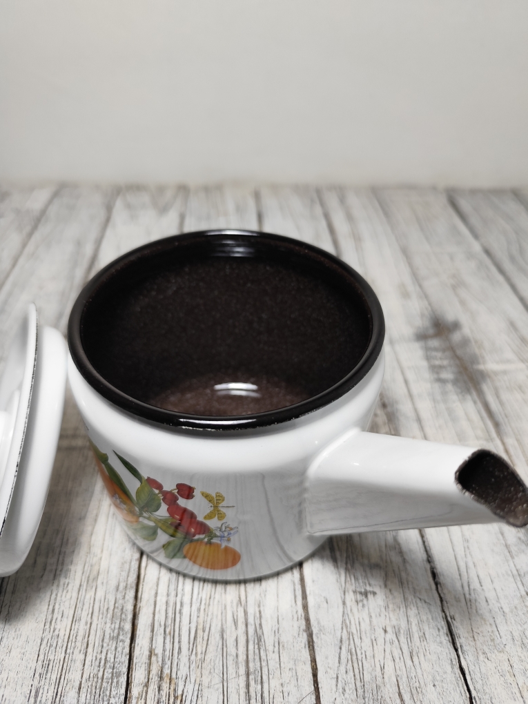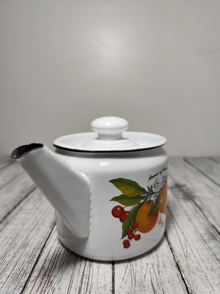 Чайник эмалированный 1 литр. Может служить и просто небольшим чайником, но и чайником для заваривания трав и чая. Всегда можно подогреть в нем напиток на любой плите, включая индукционную.