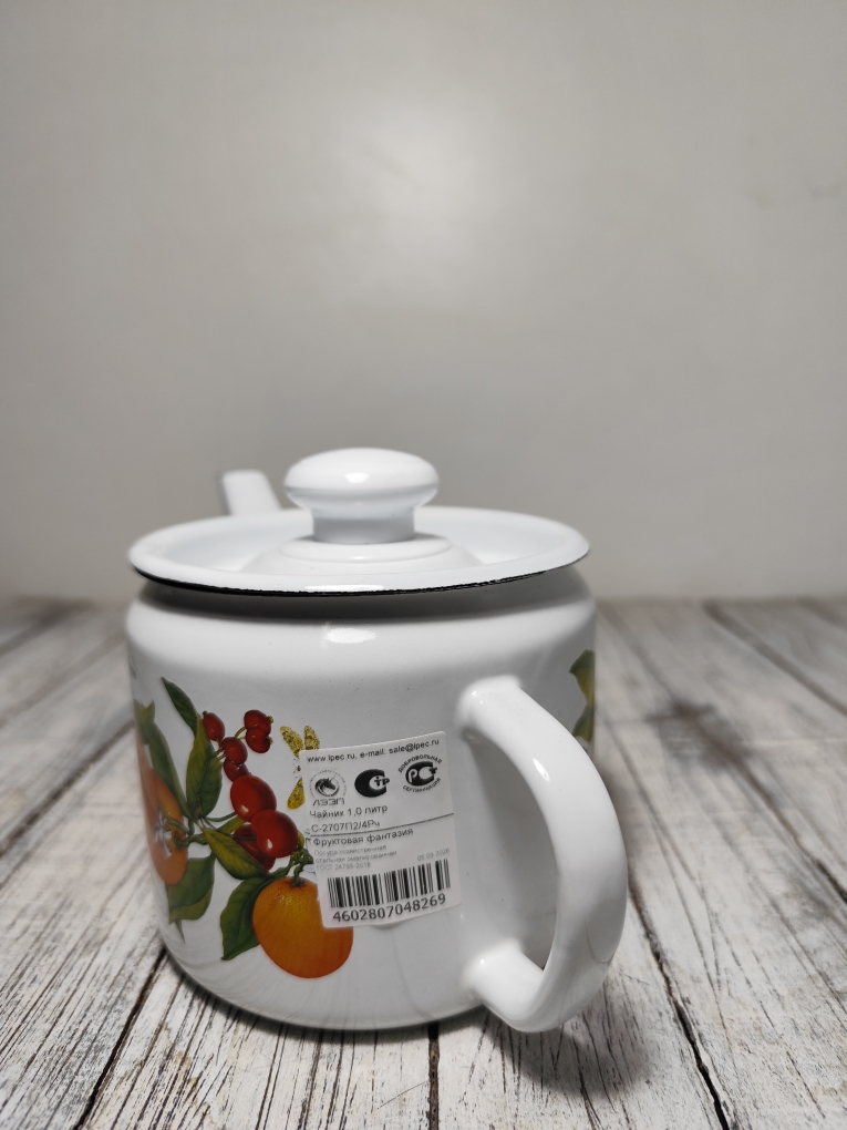 Производится чайник на Лысьвенском заводе эмалированной посуды, одном из ведущих российских производителей, что гарантирует высокое качество и надежность. Чайник эмалированный российского производства отвечает всем необходимым стандартам и требованиям, предоставляя вам уверенность в его долговечности и безопасности.