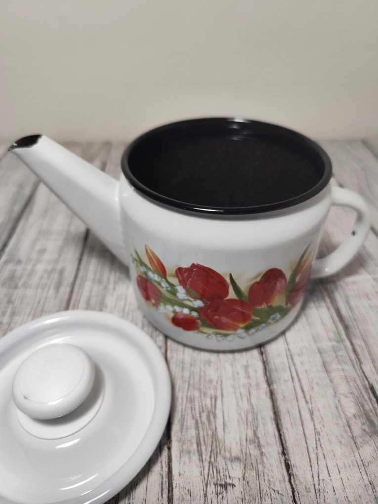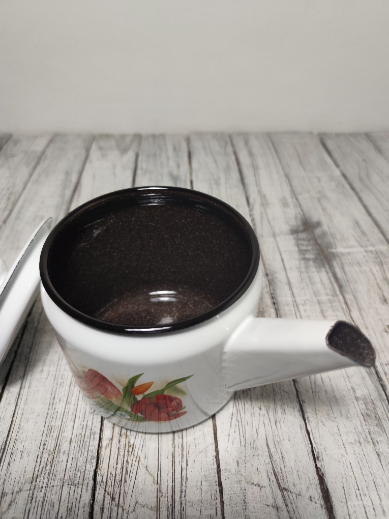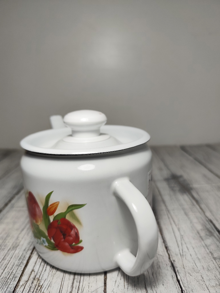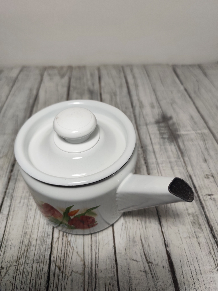 Чайник эмалированный 1 литра. Может служить и просто небольшим чайником, но и чайником для заваривания трав и чая. Всегда можно подогреть в нем напиток на любой плите, включая индукционную.
