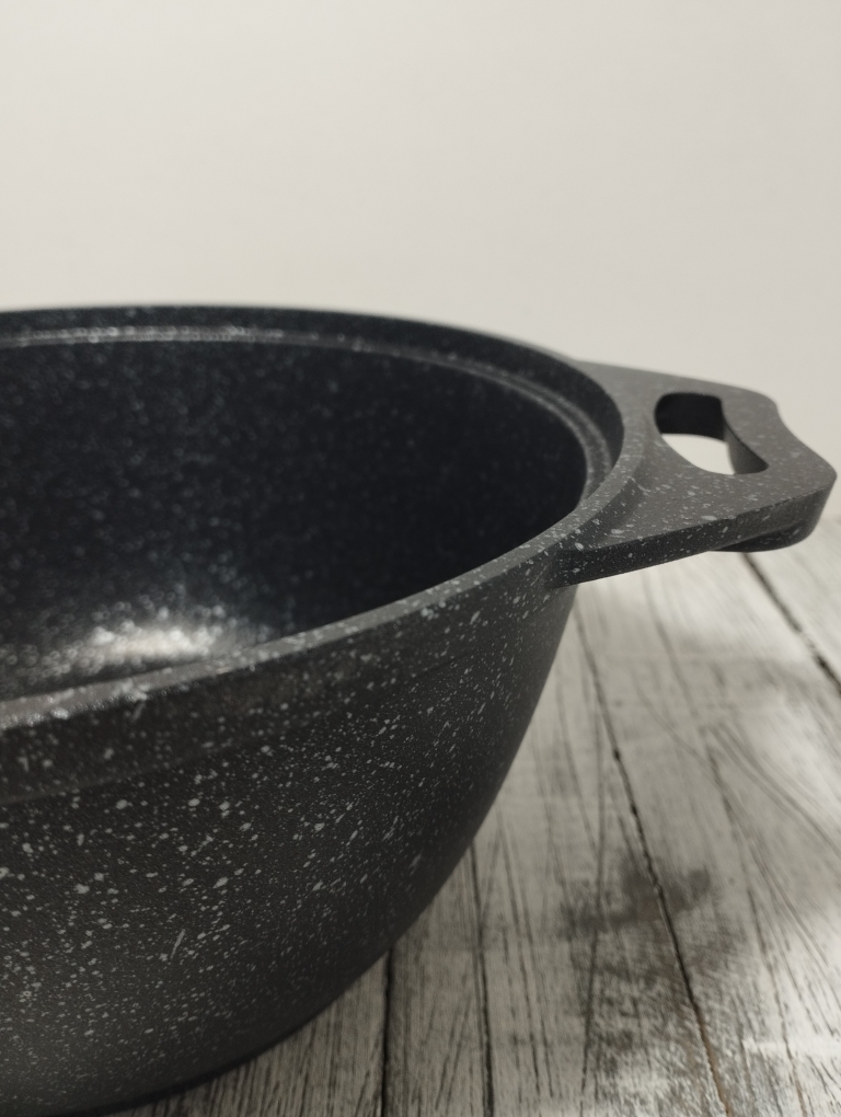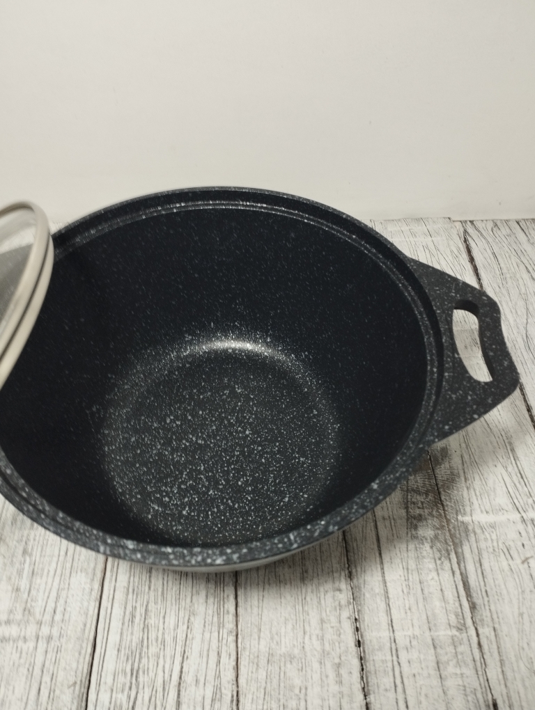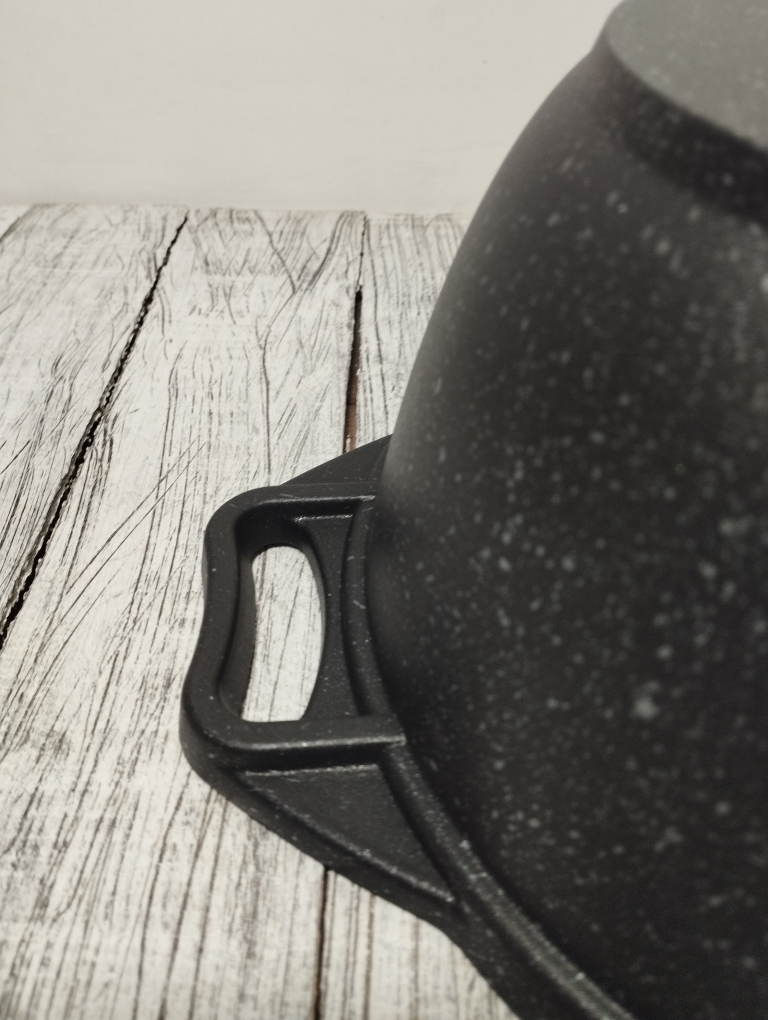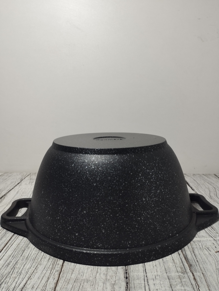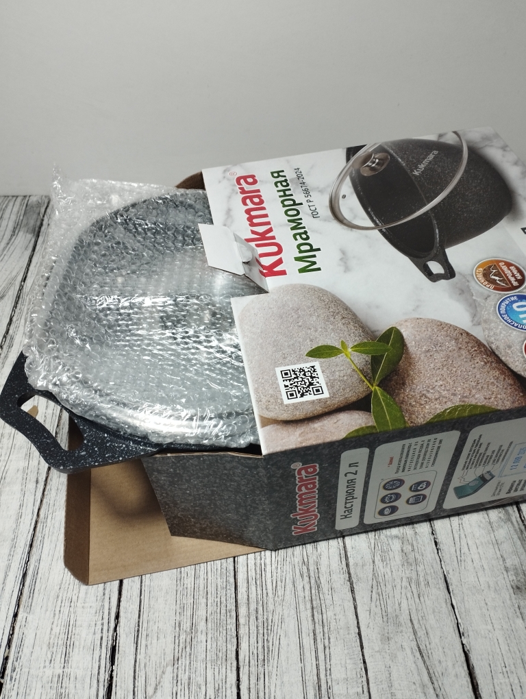 Кастрюля объемом 2 литра выполнен из высококачественного алюминиевого сплава с многослойным мраморным антипригарным покрытием что обеспечивает 16000 циклов приготовления. Утолщенное дно обеспечивает равномерное распределение тепла, что особенно важно при готовке блюд восточной кухни. Стеклянная крышка плотно закрывается, сохраняя ароматы внутри казана и позволяя контролировать процесс приготовления. Бренд "Кукмара" известен своей надежностью и долговечностью продукции, что делает данный казан отличным выбором для любителей вкусной домашней еды.
