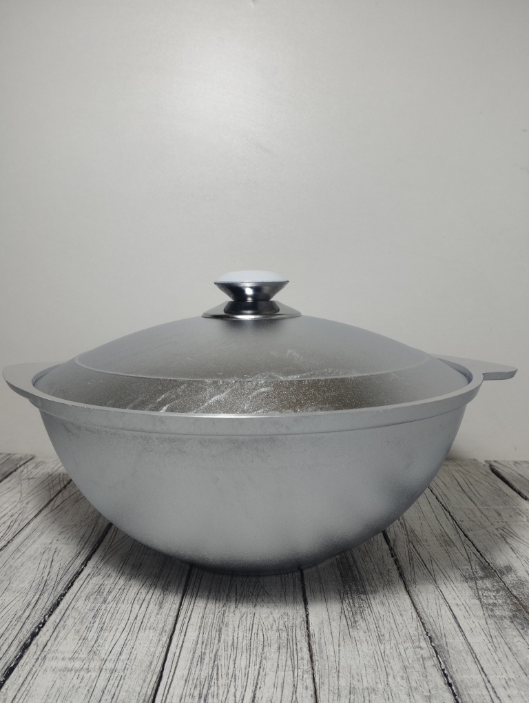 Казан от производителя "Кукмара" - это идеальное сочетание стиля и функциональности. Изготовлена она из высококачественного литого алюминия, что обеспечивает равномерное распределение тепла и долговечность использования. Толстое дно казана способствует сохранению вкусовых качеств продуктов при их приготовлении. Эту модель можно использовать как на плите, так на и костре, и в духовом шкафу.