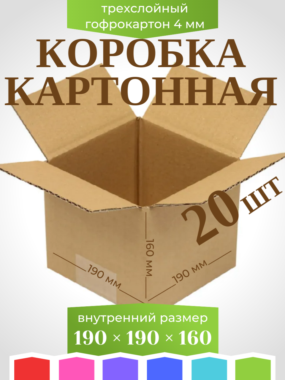 Короб 19х19х16 см. Из плотного трехслойного гофрокартона Т-23 толщиной 4 мм. .Гофрокороб подойдет для упаковки и транспортировки личных вещей, посылок и товаров с максимальной защитой от ударов и влаги. Возможно упаковывать пищевые продукты и бытовую химию. Коробки в сложенном виде и представляют собой прямоугольник толщиной почти 1 см и 38 см и 36 см по сторонам. Сложить ее в "рабочее" состояние не составит труда. В сложенном виде она имеет объем 5,8 литра.