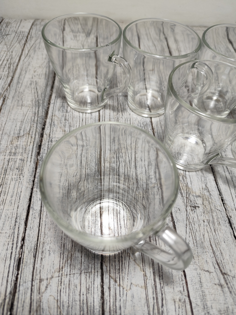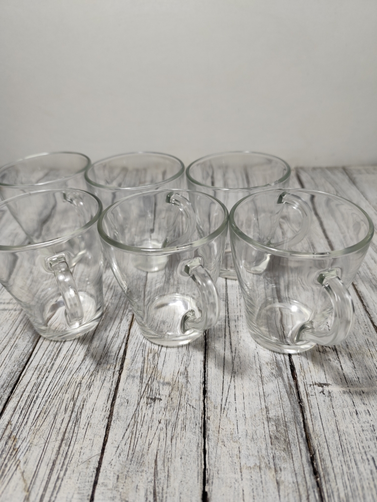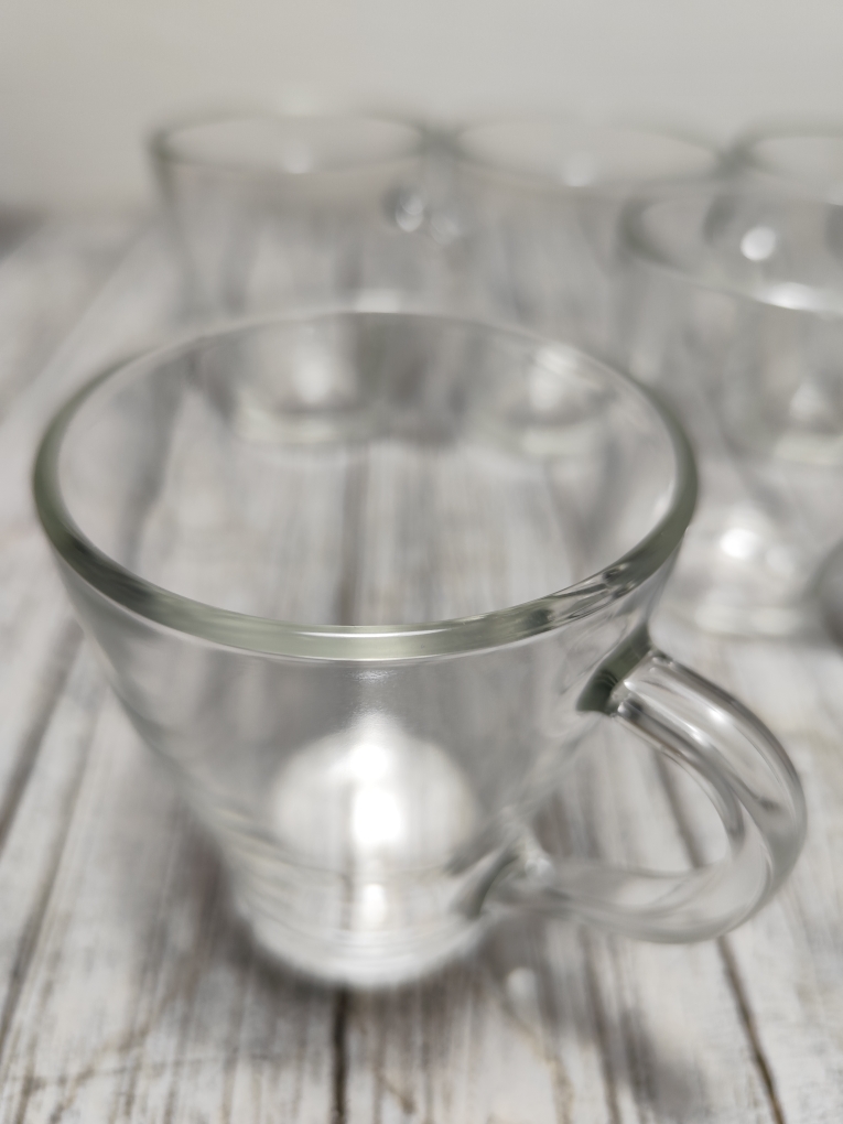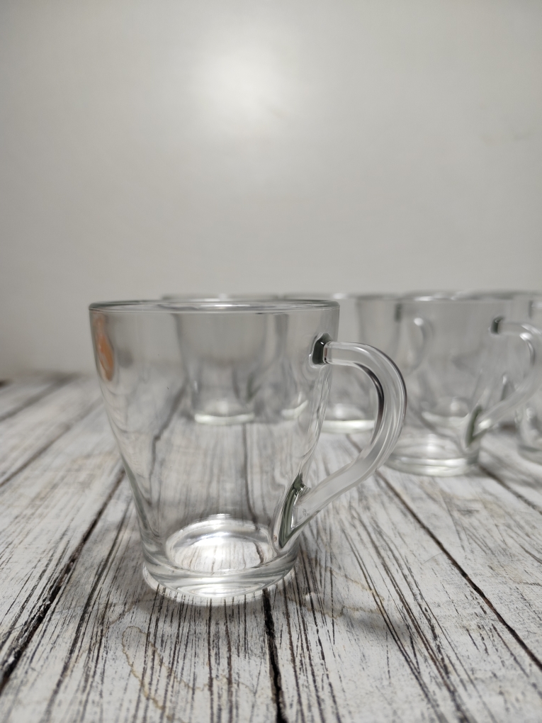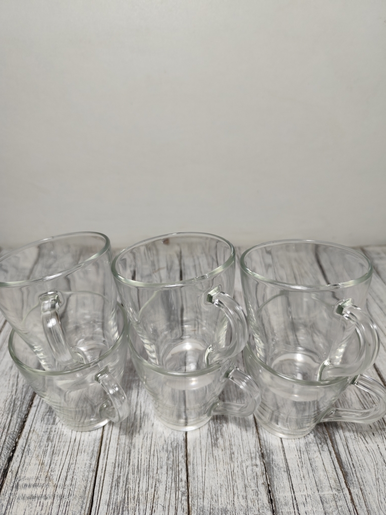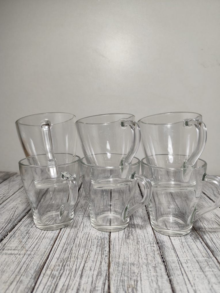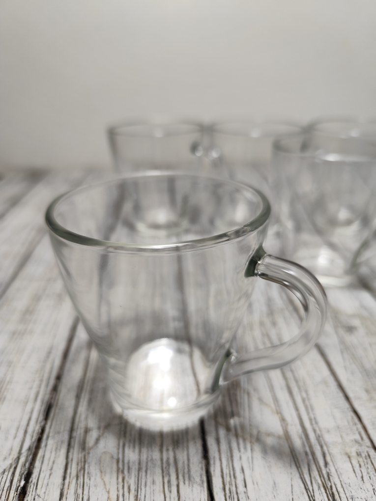 Кружка для чая-кофе стеклянная с ручкой, 250 мл. Набор из 6 штук.