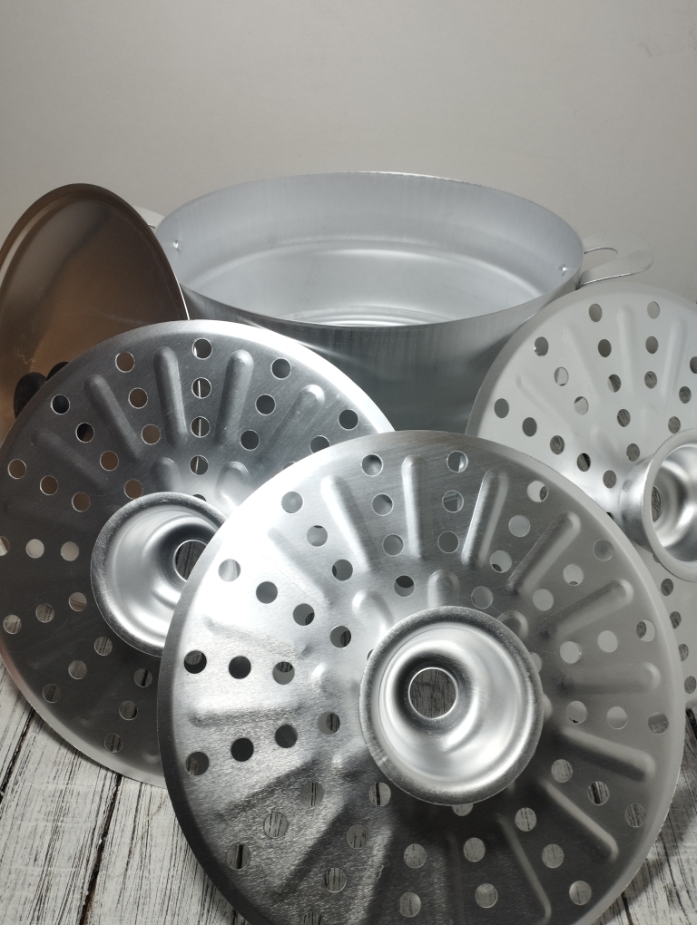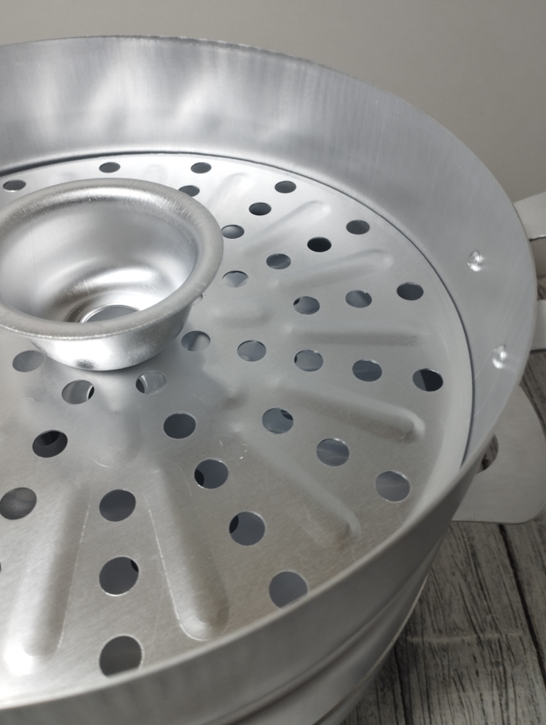 Отверстия в дне сеток позволяют распределить пар по всему объему мантоварки, что позволит приготовить еду равномерно и одновременно.