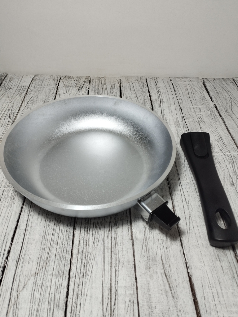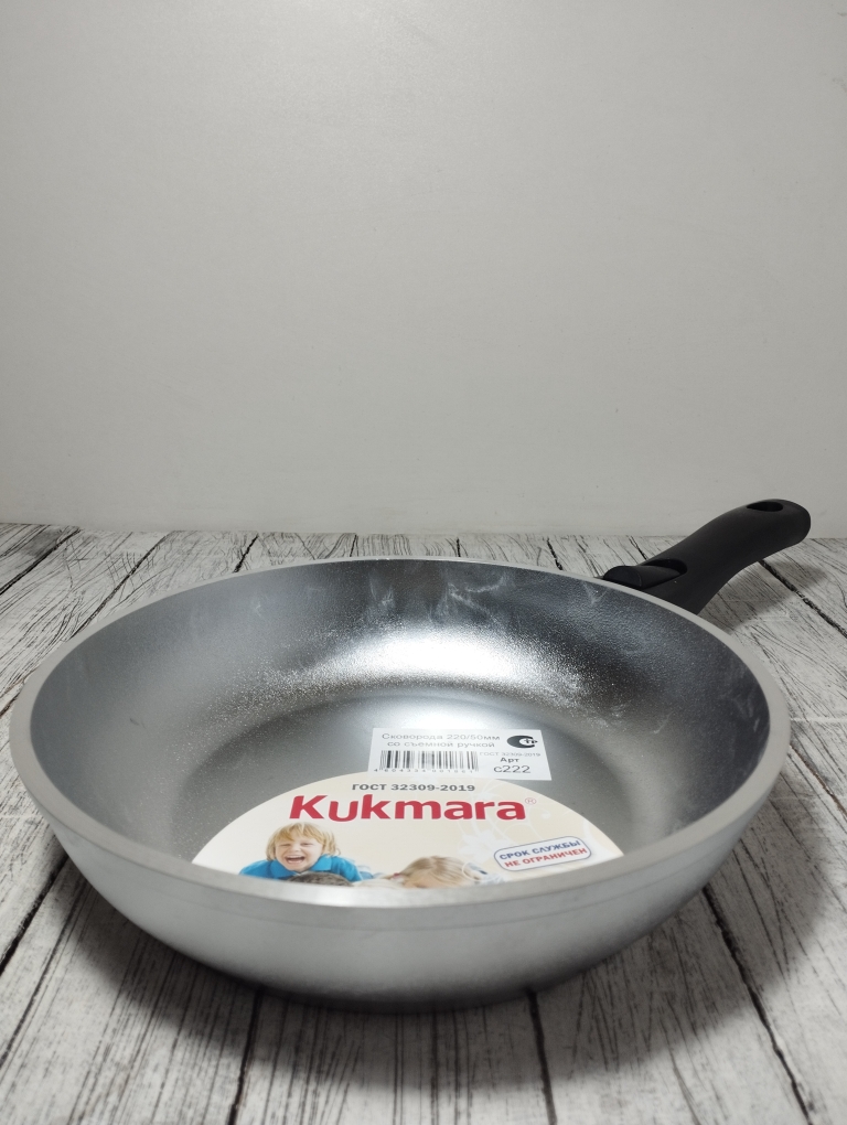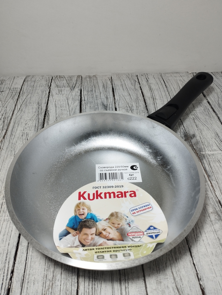 Литая алюминиевая сковорода, без покрытия со съемной бакелитовой ручкой - удобно для хранения, удобно для приготовлений в духовке. По сути она может выполнить роль круглого протвиня или формы для запекания со снятой ручкой. Доступная и надежная посуда для выпечки и приготовления на плите. Посуда из литого алюминия может прослужить долгие годы, сохраняя свои основные свойства. Литая алюминиевая посуда - идеальное соотношение демократичной цены, традиционного дизайна и проверенного покупателями качества. Эта посуда прекрасно подходит для готовки в домашних условиях. Посуду из литого алюминия без покрытия НЕЛЬЗЯ мыть в посудомоечной машине. Преимущества сковороды Kukmara - одного из старейших производителей посуды в России - значительная толщина стенок и дна исключает деформацию корпуса, долговечность, идеальное распределение тепла по всей поверхности посуды, длительное сохранение тепла, экологически безопасная.