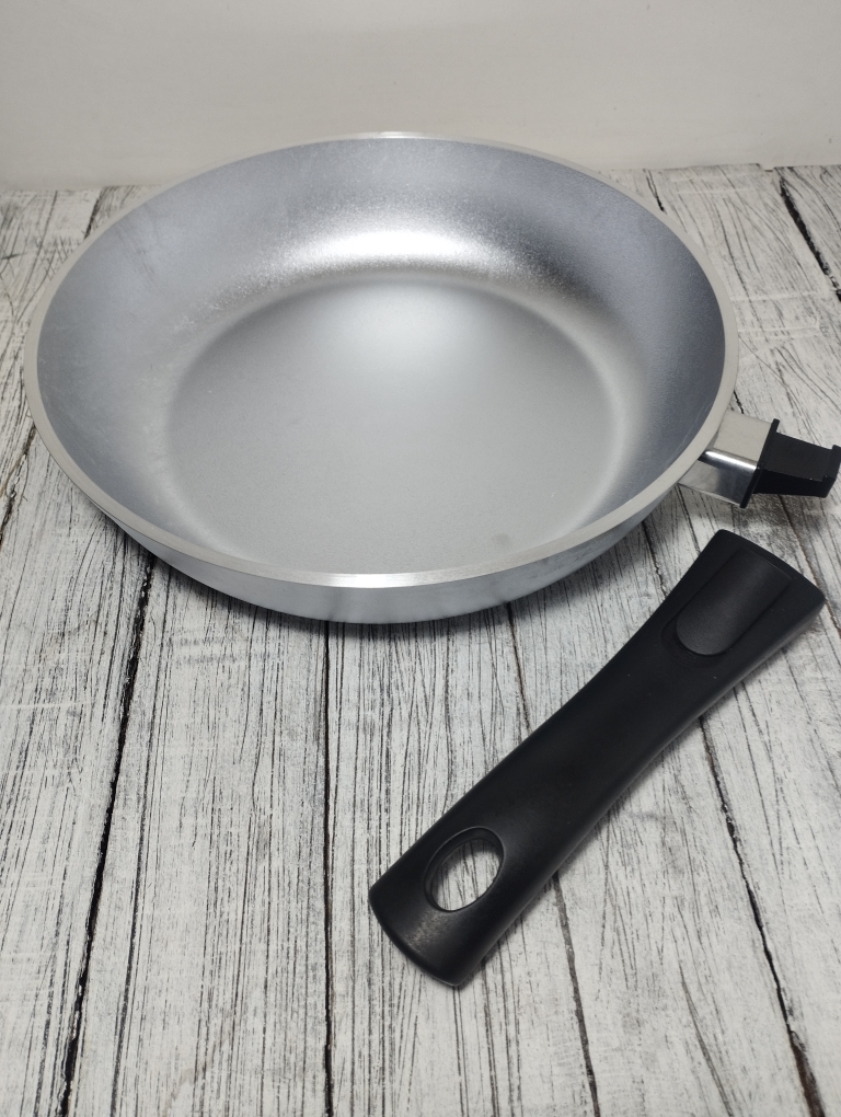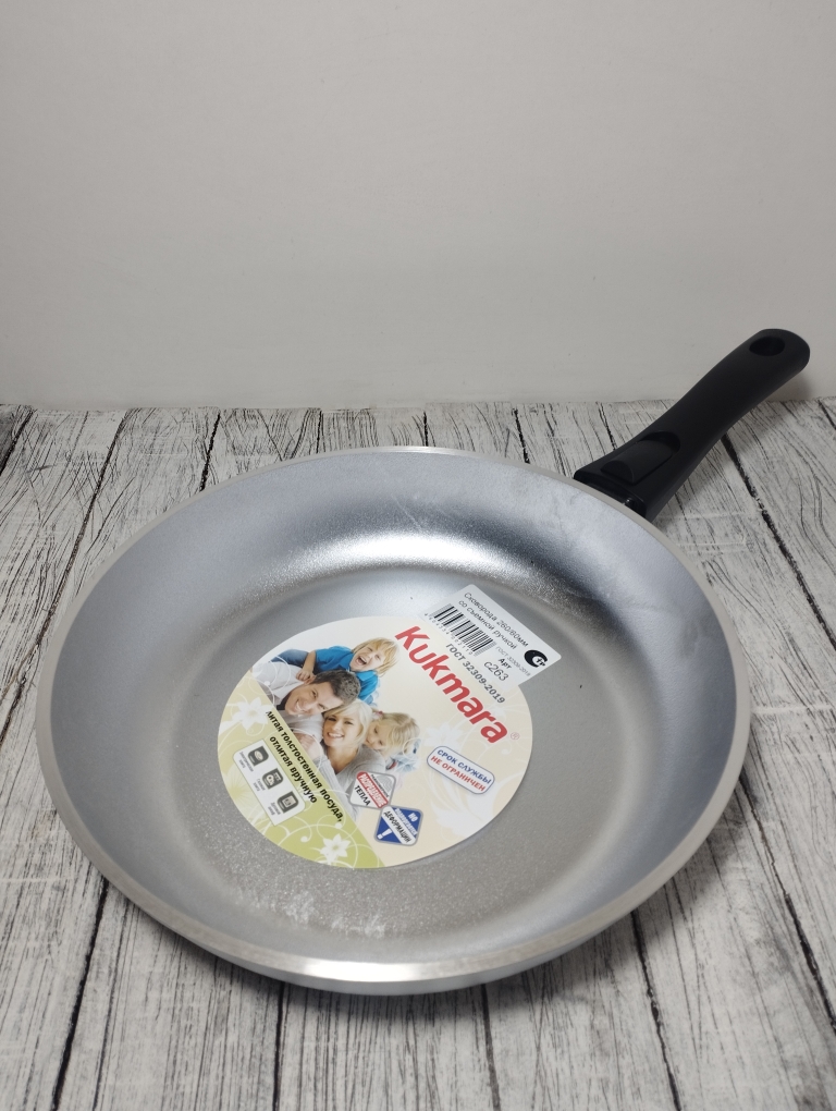 Литая алюминиевая сковорода, без покрытия со съемной бакелитовой ручкой - удобно для хранения, удобно для приготовлений в духовке. По сути она может выполнить роль круглого протвиня или формы для запекания со снятой ручкой. Доступная и надежная посуда для выпечки и приготовления на плите. Посуда из литого алюминия может прослужить долгие годы, сохраняя свои основные свойства. Литая алюминиевая посуда - идеальное соотношение демократичной цены, традиционного дизайна и проверенного покупателями качества. Эта посуда прекрасно подходит для готовки в домашних условиях. Посуду из литого алюминия без покрытия НЕЛЬЗЯ мыть в посудомоечной машине. Преимущества сковороды Kukmara - одного из старейших производителей посуды в России - значительная толщина стенок и дна исключает деформацию корпуса, долговечность, идеальное распределение тепла по всей поверхности посуды, длительное сохранение тепла, экологически безопасная.