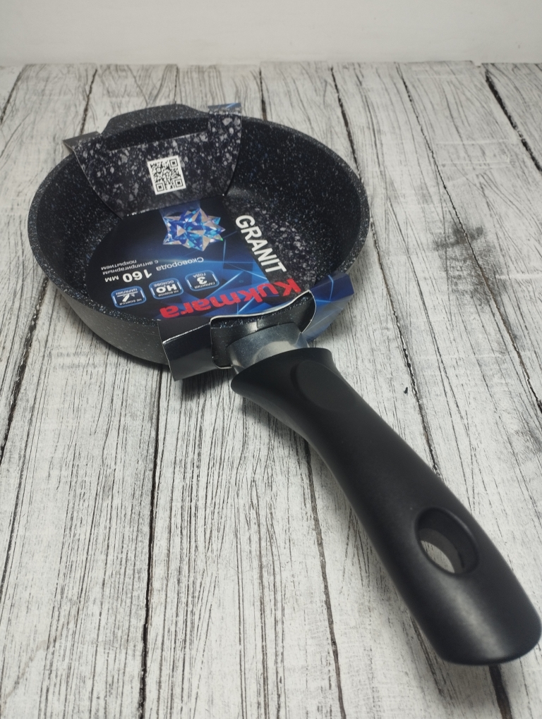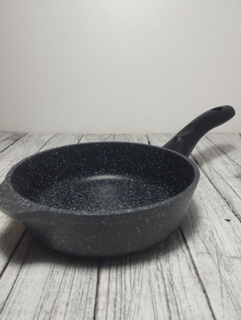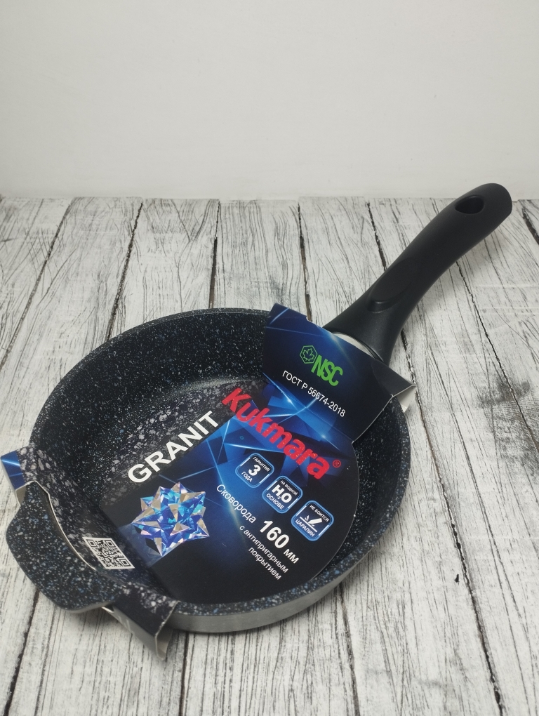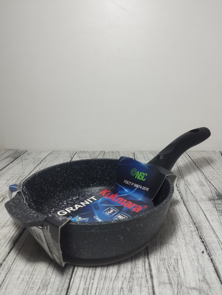 Литая алюминиевая сковорода, с надежным покрытием Granit Black, с несъемной бакелитовой ручкой от бренда Кукмара. Преимущества сковороды Kukmara - одного из старейших производителей посуды в России - значительная толщина стенок и дна исключает деформацию корпуса, долговечность, идеальное распределение тепла по всей поверхности посуды, длительное сохранение тепла, экологически безопасная.