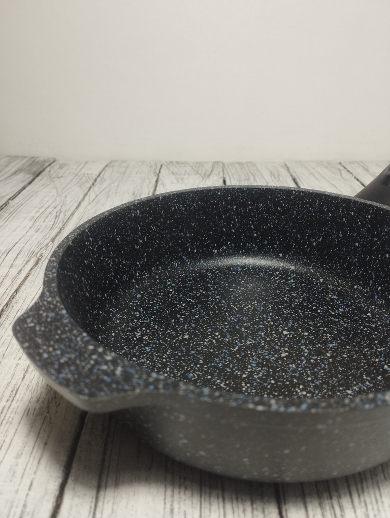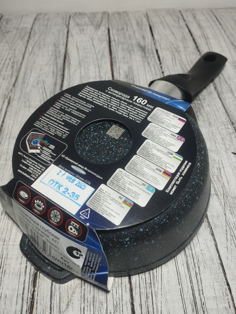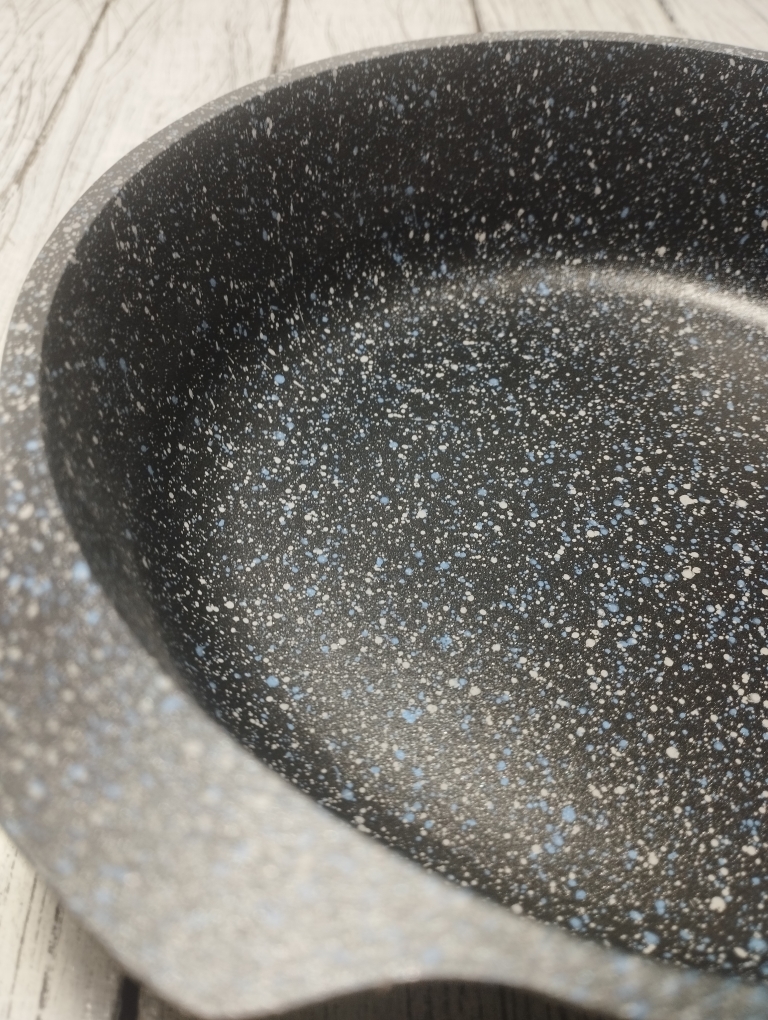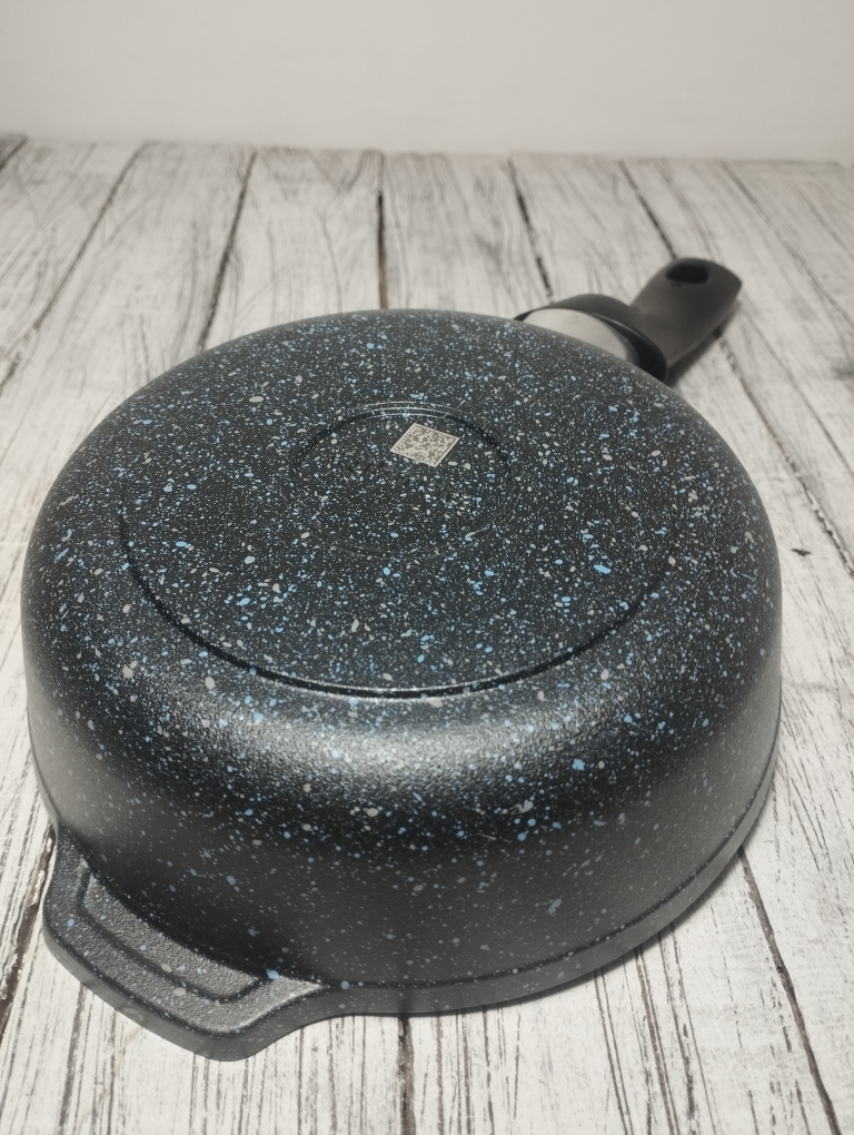Литая алюминиевая сковорода, с надежным покрытием Granit Black, с несъемной бакелитовой ручкой от бренда Кукмара. Преимущества сковороды Kukmara - одного из старейших производителей посуды в России - значительная толщина стенок и дна исключает деформацию корпуса, долговечность, идеальное распределение тепла по всей поверхности посуды, длительное сохранение тепла, экологически безопасная.