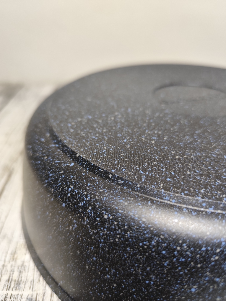 Литая алюминиевая сковорода, с надежным покрытием Granit Black, со съемной бакелитовой ручкой от бренда Кукмара. Преимущества сковороды Kukmara - одного из старейших производителей посуды в России - значительная толщина стенок и дна исключает деформацию корпуса, долговечность, идеальное распределение тепла по всей поверхности посуды, длительное сохранение тепла, экологически безопасная.