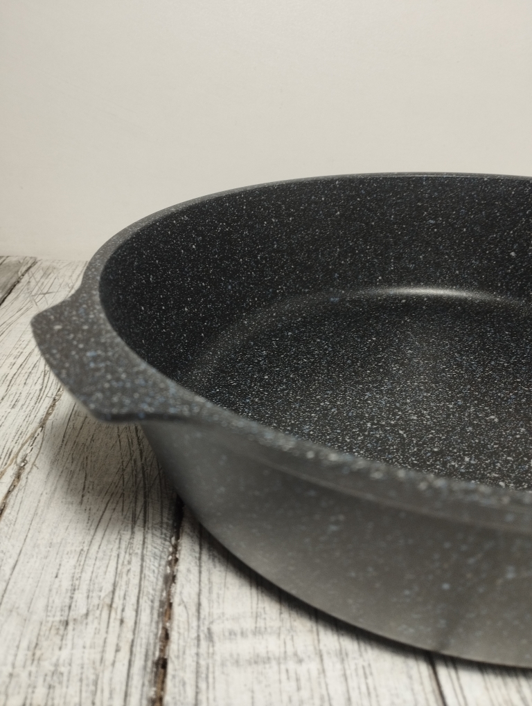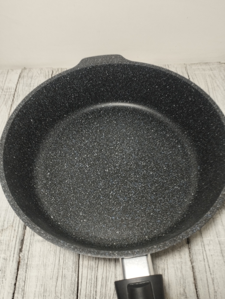 Литая алюминиевая сковорода, с надежным покрытием Granit Black, со съемной бакелитовой ручкой от бренда Кукмара. Преимущества сковороды Kukmara - одного из старейших производителей посуды в России - значительная толщина стенок и дна исключает деформацию корпуса, долговечность, идеальное распределение тепла по всей поверхности посуды, длительное сохранение тепла, экологически безопасная.